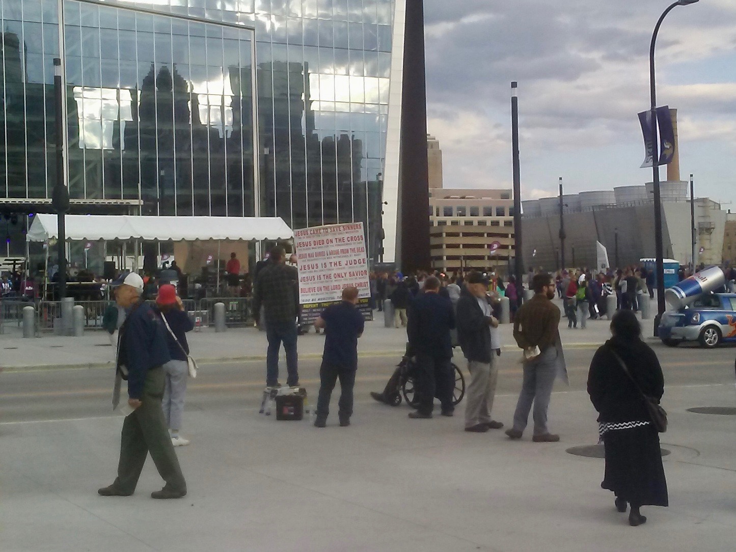As I walked closer to the stadium, one of you offered me a gospel tract. Eventually, I asked how he would feel if another Christian group held a meeting outside your church that disrupted one of your services.